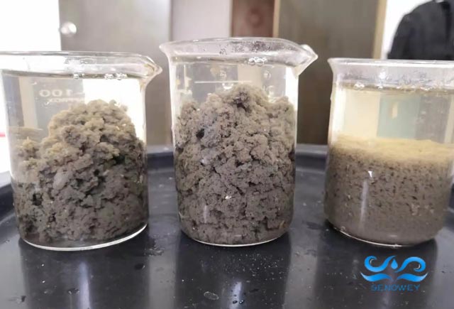 洗沙工業(yè)污水處理過程中選用絮凝劑產(chǎn)品一定要謹(jǐn)慎,首先要清楚洗沙工業(yè)水一般主要是進(jìn)行絮凝沉淀和泥水分離(壓泥脫水),一定要注意,問題就在這里,如果是單獨(dú)的絮凝沉淀的話使用中高分子量的非離子型和陰離子型聚丙烯酰胺就足以了,可以搭配聚合氯化鋁同時使用。但如果是壓泥脫水需用低離子度陽離子型PAM,如果選型不當(dāng),造成絮凝沉淀,泥水分離效果不佳,直接放水就會產(chǎn)生泥沙堵塞管道。在上機(jī)操作過程中也一定要注意,如果出現(xiàn)絮凝沉淀效果不明顯,一定不要放水,如果放水就會造成上面所說的堵塞管道和機(jī)械設(shè)備,導(dǎo)致設(shè)備不能正常運(yùn)行。